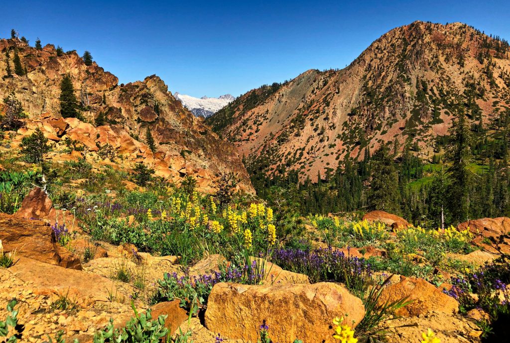 The Trinity Alps in California are a treasure to those who explore on foot. Many picturesque streams, meadows, rocky peaks, and lakes are nestled within the Trinity Alps, and everything is stunningly gorgeous. Additionally, the plentiful variety and display of vibrant summer wildflowers blanketing meadows and hillsides is mesmerizing. Because many of these delights are tucked away far from car accessible trailheads, backpacking the Trinity Alps is the best way to experience these incredible scenes of beauty. One of the more popular backpacking trips here is through the Four Lakes area, and it is simply breathtaking.